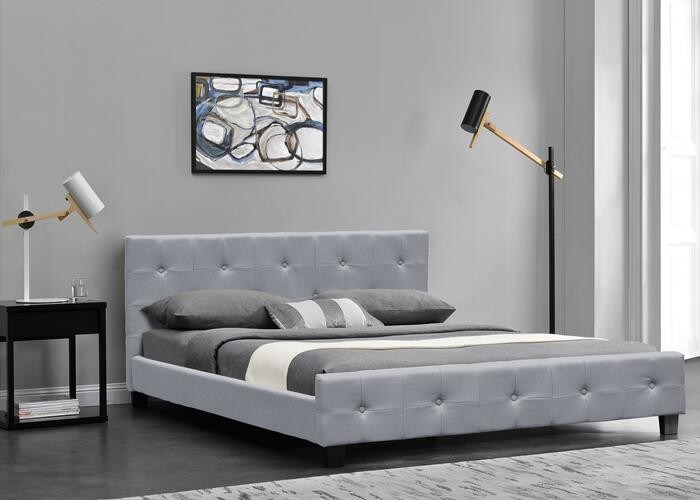 Thiết kế đơn giản Dễ dàng lắp ráp Vải màu xám nhạt Bọc giường bằng ván ép Khung giường